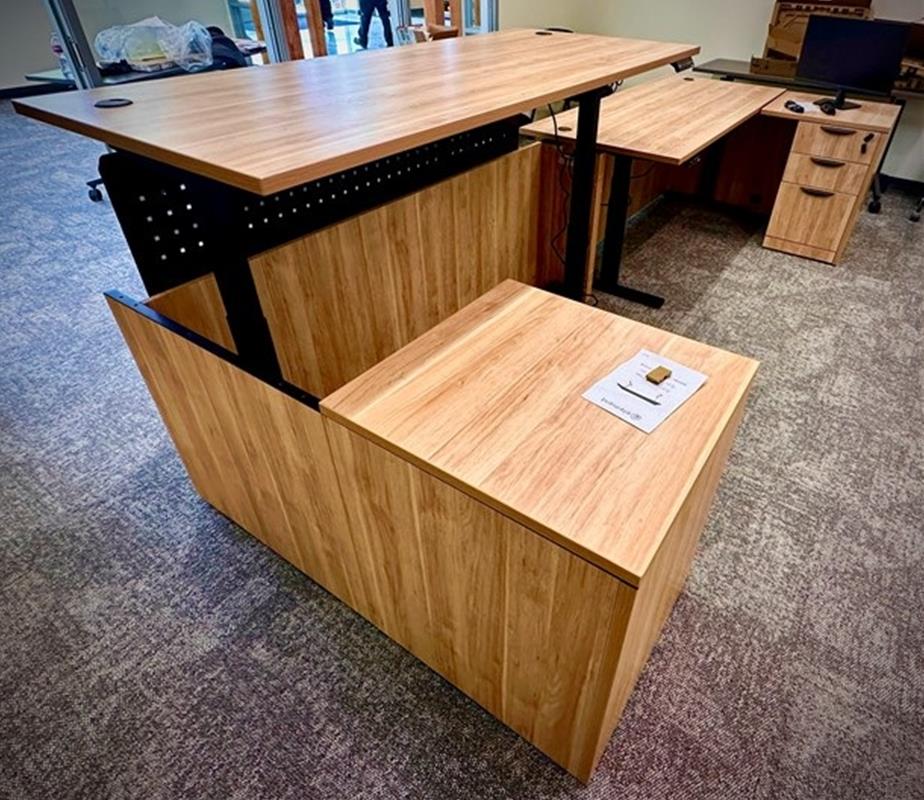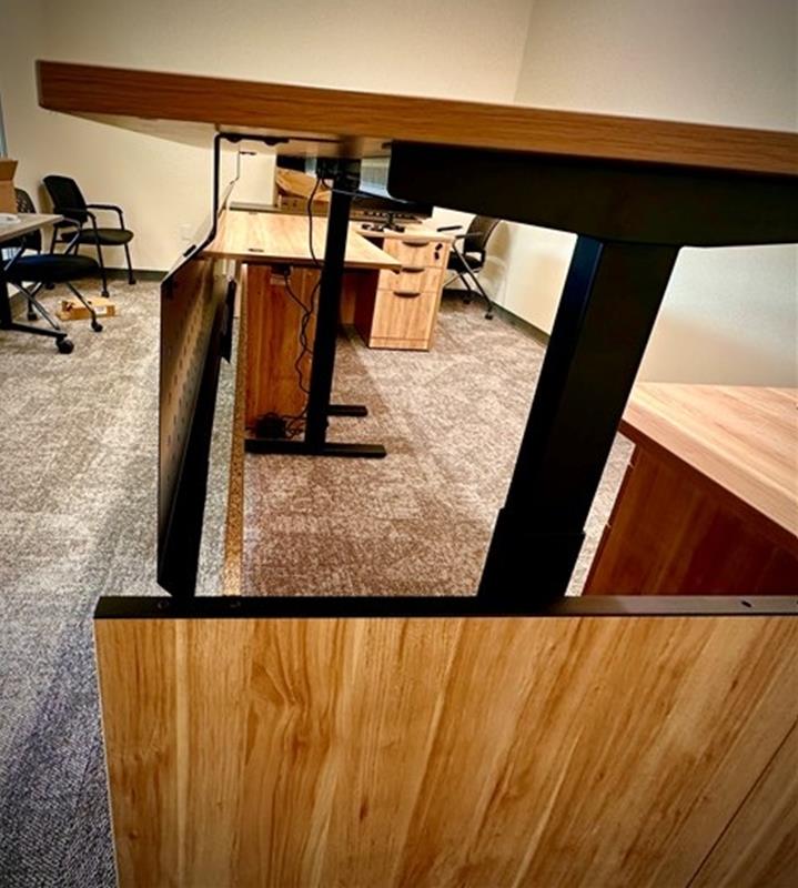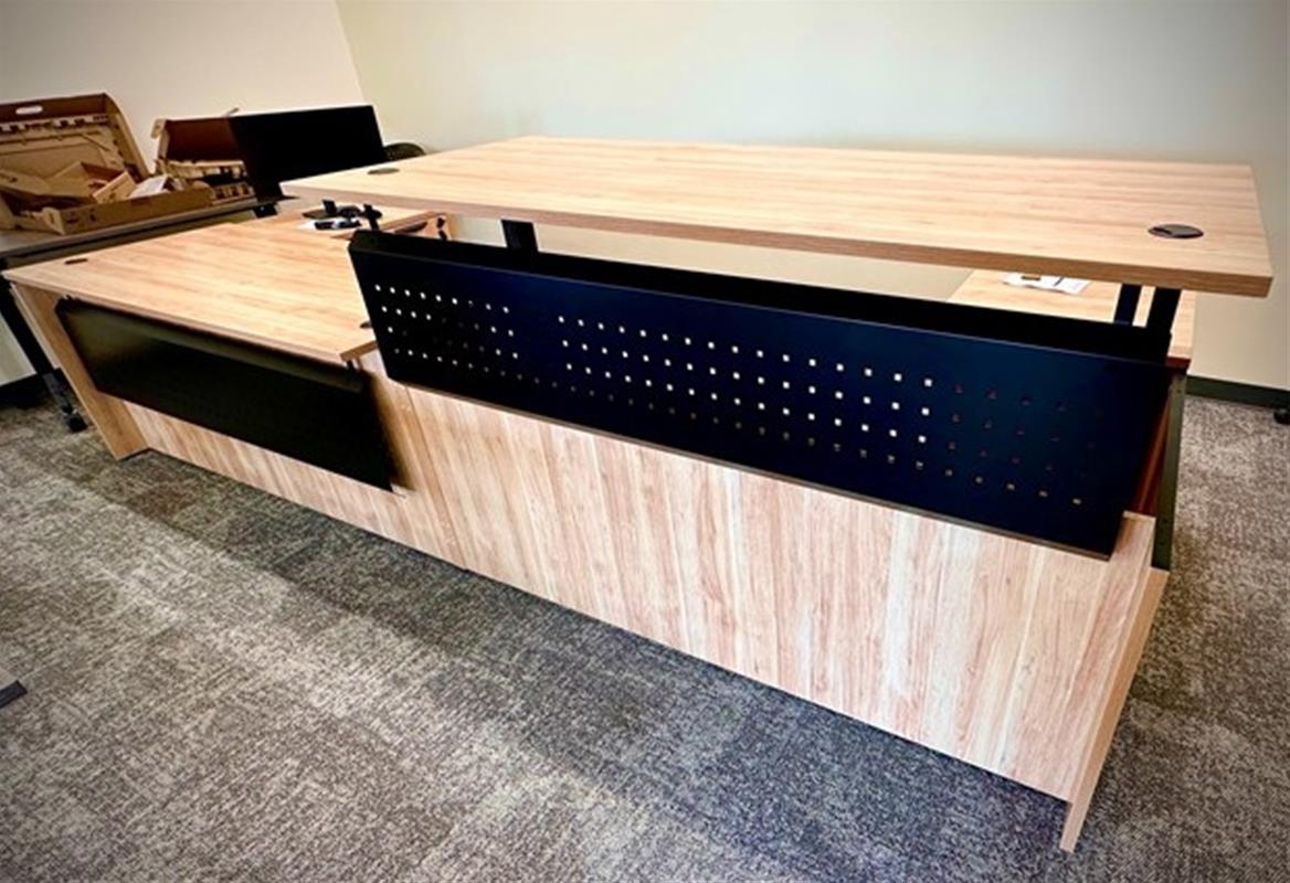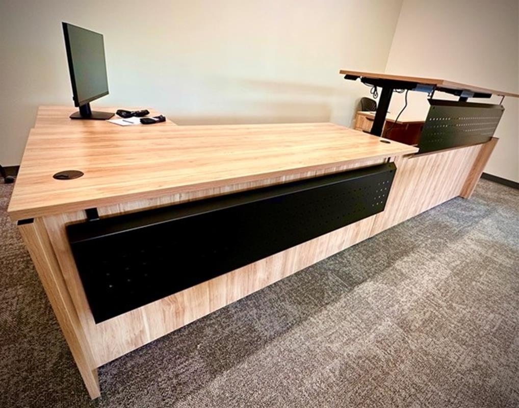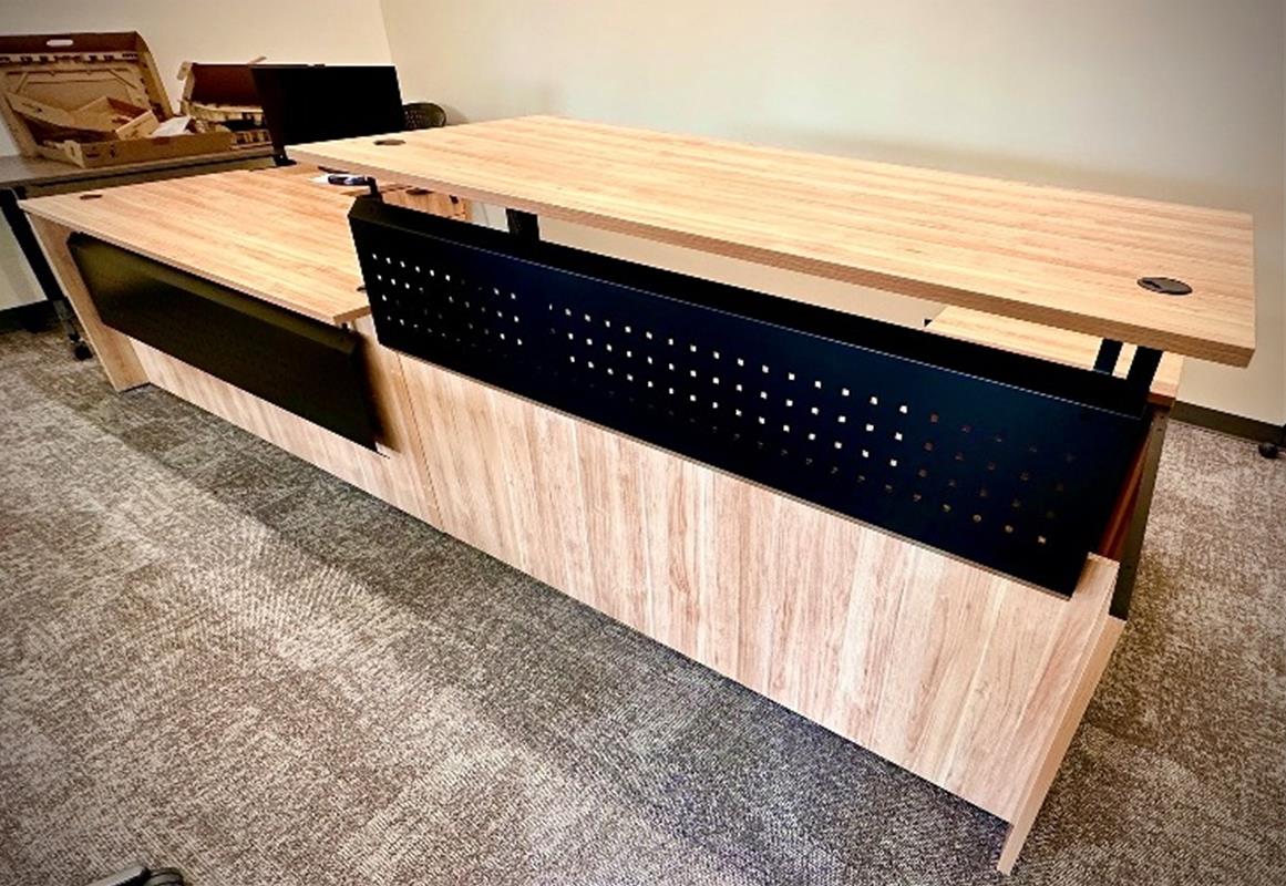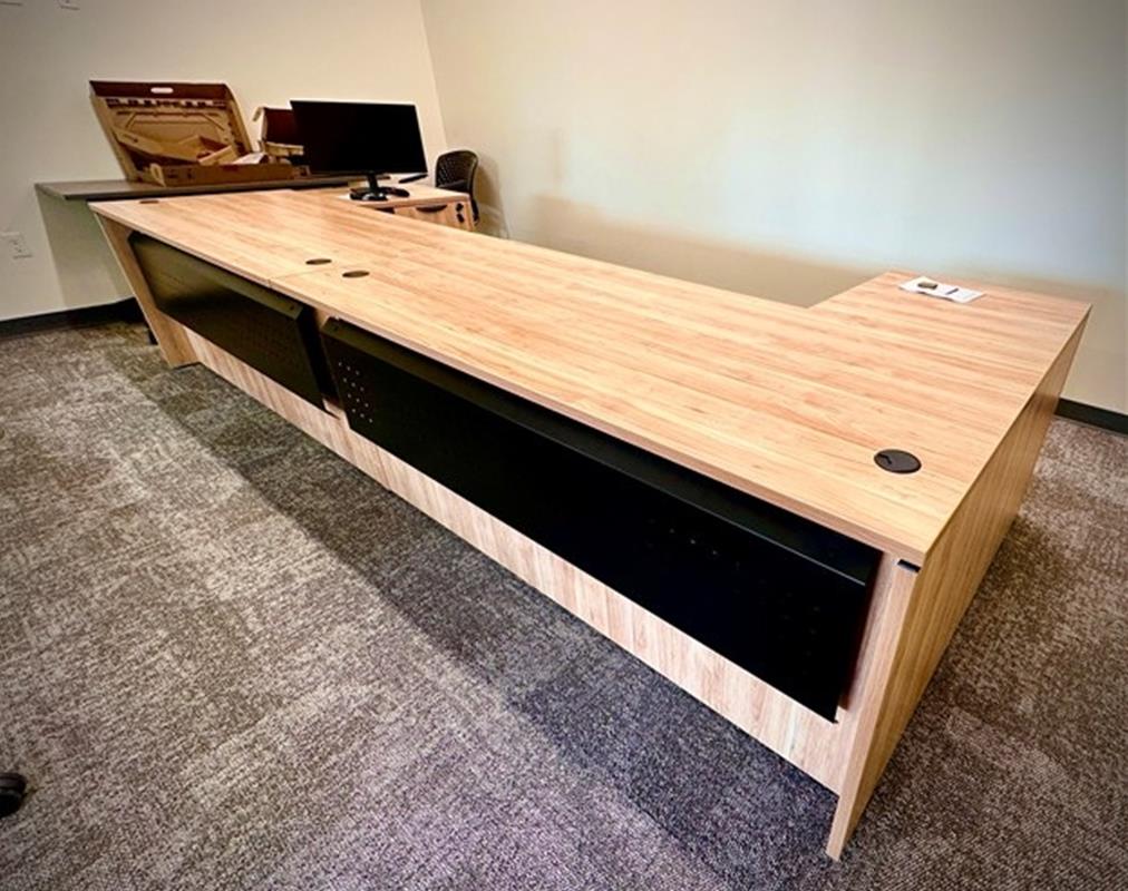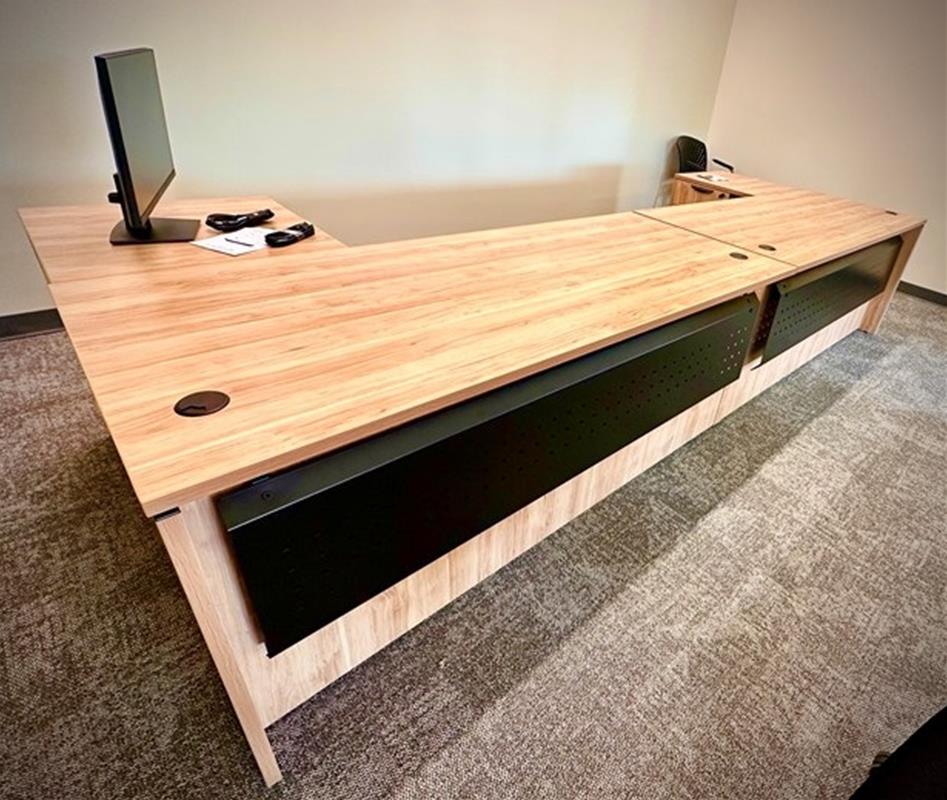 This project included a special installation requirement with modified modesty panels to meet layout and design needs.
